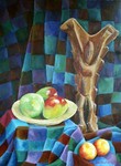 2010Stilleven met doek en beeld uit Mali