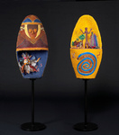 De basis van de beelden is papier maché. In het algemeen zijn zij geïnspireerd Afrikaanse symboliek